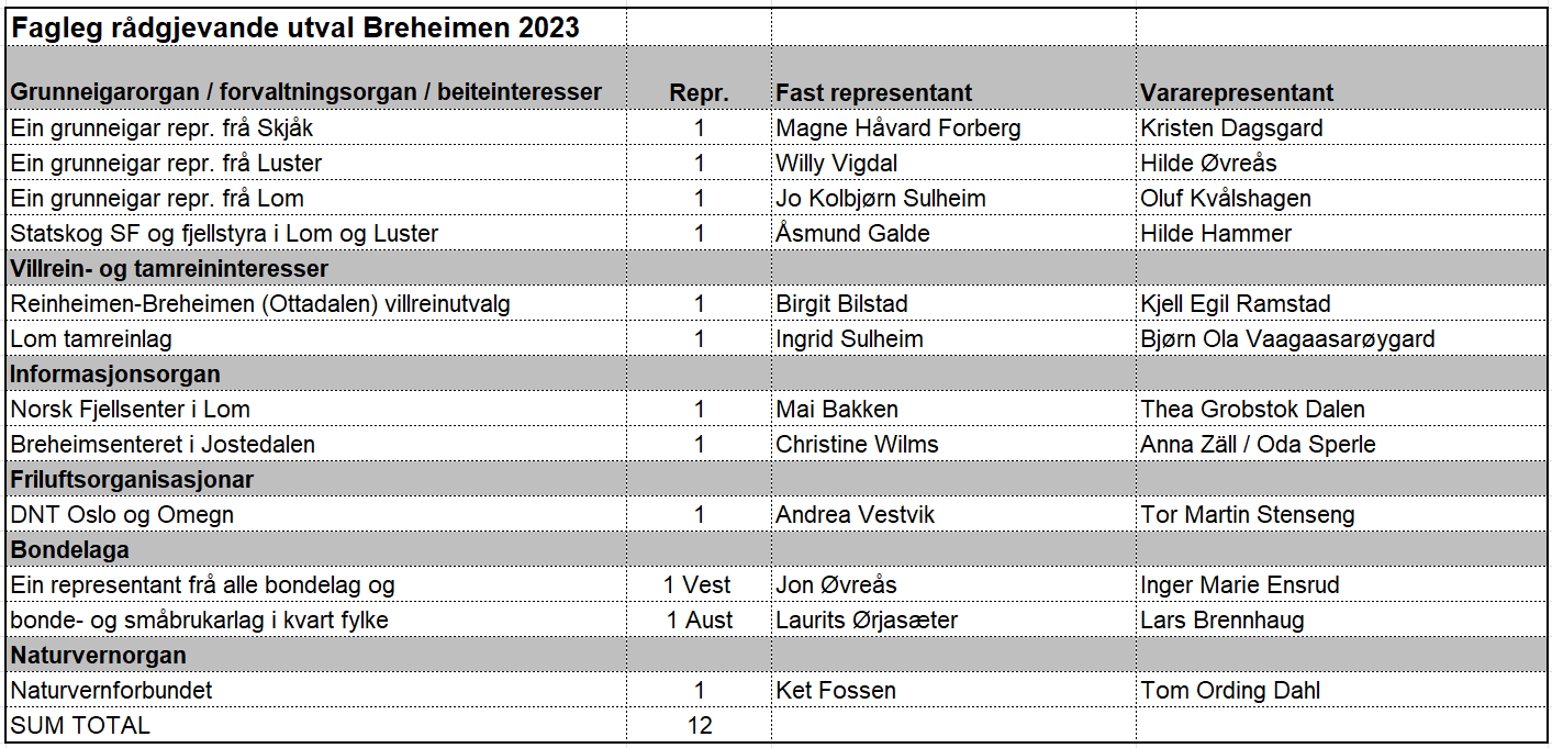 Breheimen nasjonalparkstyre har oppnemd eit rådgjevande utval. Utvalet er samansett av representantar for dei ulike interessene i området. Rådgjevande utval har inga vedtaksmynde, men skal være samansett av representantar som kan gje innspel til nasjonalparkstyret i ulike saker. Oversikt over dei ulike møta finn du i menyen på venstre side.