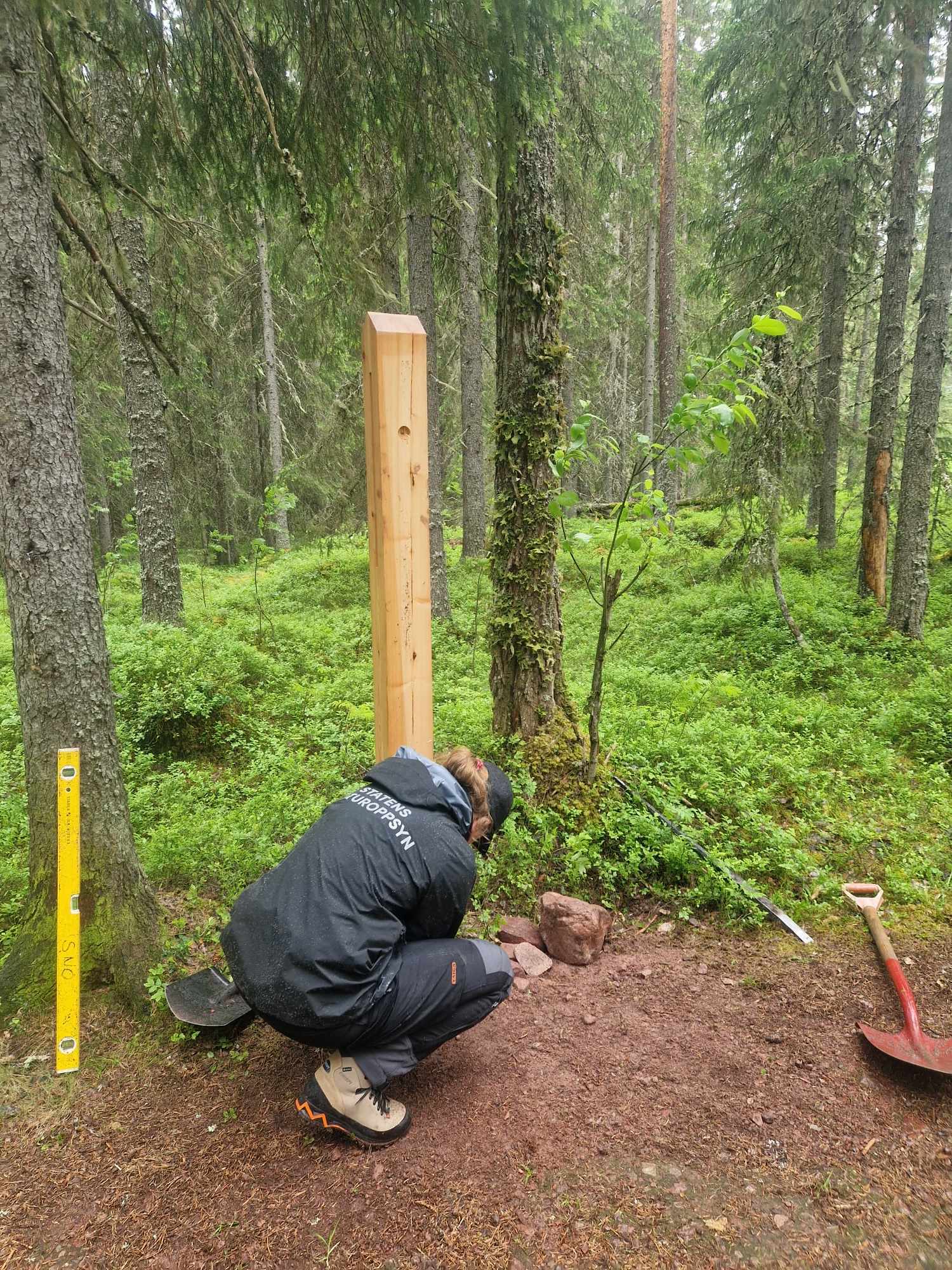 Fundamentering av stolper. Foto: Statskog Fjelltjenesten