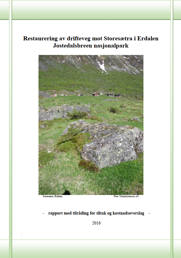 Kongeleg resolusjon Verneforskrift Forvaltningsplan Besøksstrategi Skjøtselsplanar Årsrapportar SNO Jostedalsbreen Brosjyrar Fagrapportar Briksdalen - en innfallsport til Jostedalsbreen nasjonalpark Bruken og brukarane av Jostedalsbreen nasjonalpark 2017 Bruk av vern av Jostedalsbreen nasjonalpark og Nigardsbreen naturreservat som turistattraksjon - Bacheloroppgåve 2021 Forprosjekt - Infrastruktur ved Bøyabreen Haugadalen – en innfallsport til Jostedalsbreen nasjonalpark Innfallsport Bøyadalen - Bacheloroppgåve 2014 Innfallsport Krundalen - Bacheloroppgåve 2013 Innfallsport Tjugen - Skåla - Bacheloroppgåve 2018 Innfallsprt Kjenndalen og Bødalen - Bachelor 2013 Kartlegging av kulturminne og landbruks- og næringsrelatert næring i randsona av Jostedalsbreen nasjonalpark Lunde - en innfallsport til Jostedalsbreen nasjonalpark - Bacheloroppgave 2020 Bestandstaksering av hekkefugl i Erdalen, Bødalen og Sunndalen i Stryn 2019 Restaurering av drifteveg mot Storesætra i Erdalen - 2016 Restaurering av drifteveg mot Sunndalssætra - 2016 Restaurering av patentrute, Kattanakken - 2018 Restaurering av stien opp Lundeskaret - rapport 2015 Restaurering av stien til Oldeskaret - rapport etter arbeidet 2014 og 2015 Restaurering av turrute, Flatsteinbu - rapport 2020 Restaurering av Keisar Wilhelms-sti, Briksdal - rapport med tilråding for tiltak - 2021 Restaurering av fem gamle ferdselsvegar i Jostedalsbreen nasjonalpark - 2012 Basiskartlegging i Jostedalsbreen nasjonalpark - Austerdalen, Langedalen og Sunndalen - 2018 Basiskartlegging i verneområde - Fåbergstølsgrandane - 2017 Innfallsport Sunndalen - Bacheloroppgåve - 2020 Innfallsport Supphelledalen - Bacheloroppgåve - 2020 Sårbarheitsvurdering - Austerdalen, Langedalen og Krundalen - Tuftebreen Sårbarheitsvurdering for ferdsel - Kattanakken, Oldeskaret og Sunndalen - 2018 Sårbarheitsvurdering for ferdsel - Skåla-Vesleskåla, Haugadalen og Bøyadalen - 2020 Tungestølen - En innfallsport til Jostedalsbreen nasjonalpark Plan for ny tursti Tungestølen - Nystølen - 2021 Kartlegging av fuglefaunaen ved Tungestølen, Veitastrond, 2021 Nesje A. - Geologiske verneverdiar i og rundt Jostedalsbreen nasjonalpark (2023) Rapport frå NiN-basiskartlegging av utvalgte verneområder i Vestland fylke, 2023 Restaurering av drifteveg mot Storesætra i Erdalen - 2016 Restaurering av drifteveg mot Storesætra i Erdalen - rapport Last ned File icon PDF