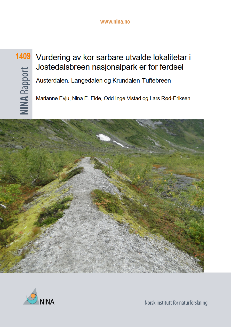 Kongeleg resolusjon Verneforskrift Forvaltningsplan Besøksstrategi Skjøtselsplanar Årsrapportar SNO Jostedalsbreen Brosjyrar Fagrapportar Briksdalen - en innfallsport til Jostedalsbreen nasjonalpark Bruken og brukarane av Jostedalsbreen nasjonalpark 2017 Bruk av vern av Jostedalsbreen nasjonalpark og Nigardsbreen naturreservat som turistattraksjon - Bacheloroppgåve 2021 Forprosjekt - Infrastruktur ved Bøyabreen Haugadalen – en innfallsport til Jostedalsbreen nasjonalpark Innfallsport Bøyadalen - Bacheloroppgåve 2014 Innfallsport Krundalen - Bacheloroppgåve 2013 Innfallsport Tjugen - Skåla - Bacheloroppgåve 2018 Innfallsprt Kjenndalen og Bødalen - Bachelor 2013 Kartlegging av kulturminne og landbruks- og næringsrelatert næring i randsona av Jostedalsbreen nasjonalpark Lunde - en innfallsport til Jostedalsbreen nasjonalpark - Bacheloroppgave 2020 Bestandstaksering av hekkefugl i Erdalen, Bødalen og Sunndalen i Stryn 2019 Restaurering av drifteveg mot Storesætra i Erdalen - 2016 Restaurering av drifteveg mot Sunndalssætra - 2016 Restaurering av patentrute, Kattanakken - 2018 Restaurering av stien opp Lundeskaret - rapport 2015 Restaurering av stien til Oldeskaret - rapport etter arbeidet 2014 og 2015 Restaurering av turrute, Flatsteinbu - rapport 2020 Restaurering av Keisar Wilhelms-sti, Briksdal - rapport med tilråding for tiltak - 2021 Restaurering av fem gamle ferdselsvegar i Jostedalsbreen nasjonalpark - 2012 Basiskartlegging i Jostedalsbreen nasjonalpark - Austerdalen, Langedalen og Sunndalen - 2018 Basiskartlegging i verneområde - Fåbergstølsgrandane - 2017 Innfallsport Sunndalen - Bacheloroppgåve - 2020 Innfallsport Supphelledalen - Bacheloroppgåve - 2020 Sårbarheitsvurdering - Austerdalen, Langedalen og Krundalen - Tuftebreen Sårbarheitsvurdering for ferdsel - Kattanakken, Oldeskaret og Sunndalen - 2018 Sårbarheitsvurdering for ferdsel - Skåla-Vesleskåla, Haugadalen og Bøyadalen - 2020 Tungestølen - En innfallsport til Jostedalsbreen nasjonalpark Plan for ny tursti Tungestølen - Nystølen - 2021 Kartlegging av fuglefaunaen ved Tungestølen, Veitastrond, 2021 Nesje A. - Geologiske verneverdiar i og rundt Jostedalsbreen nasjonalpark (2023) Rapport frå NiN-basiskartlegging av utvalgte verneområder i Vestland fylke, 2023 Sårbarheitsvurdering - Austerdalen, Langedalen og Krundalen - Tuftebreen Sårbarheitsvurdering - Austerdalen, Langedalen og Krundalen - Tuftebreen Last ned File icon PDF
