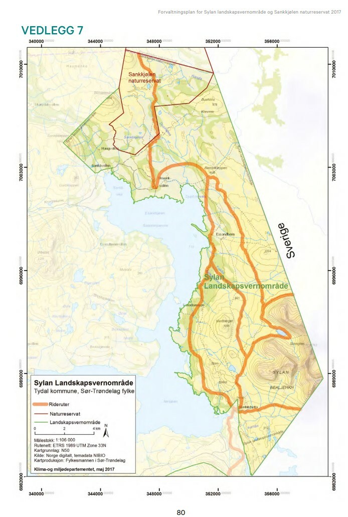 Organisert bruk av hest er søknadspliktig og bare tillatt på veier eller trasèer som er godkjent for slik bruk i forvaltningsplanen for Sylan landskapsvernområde.