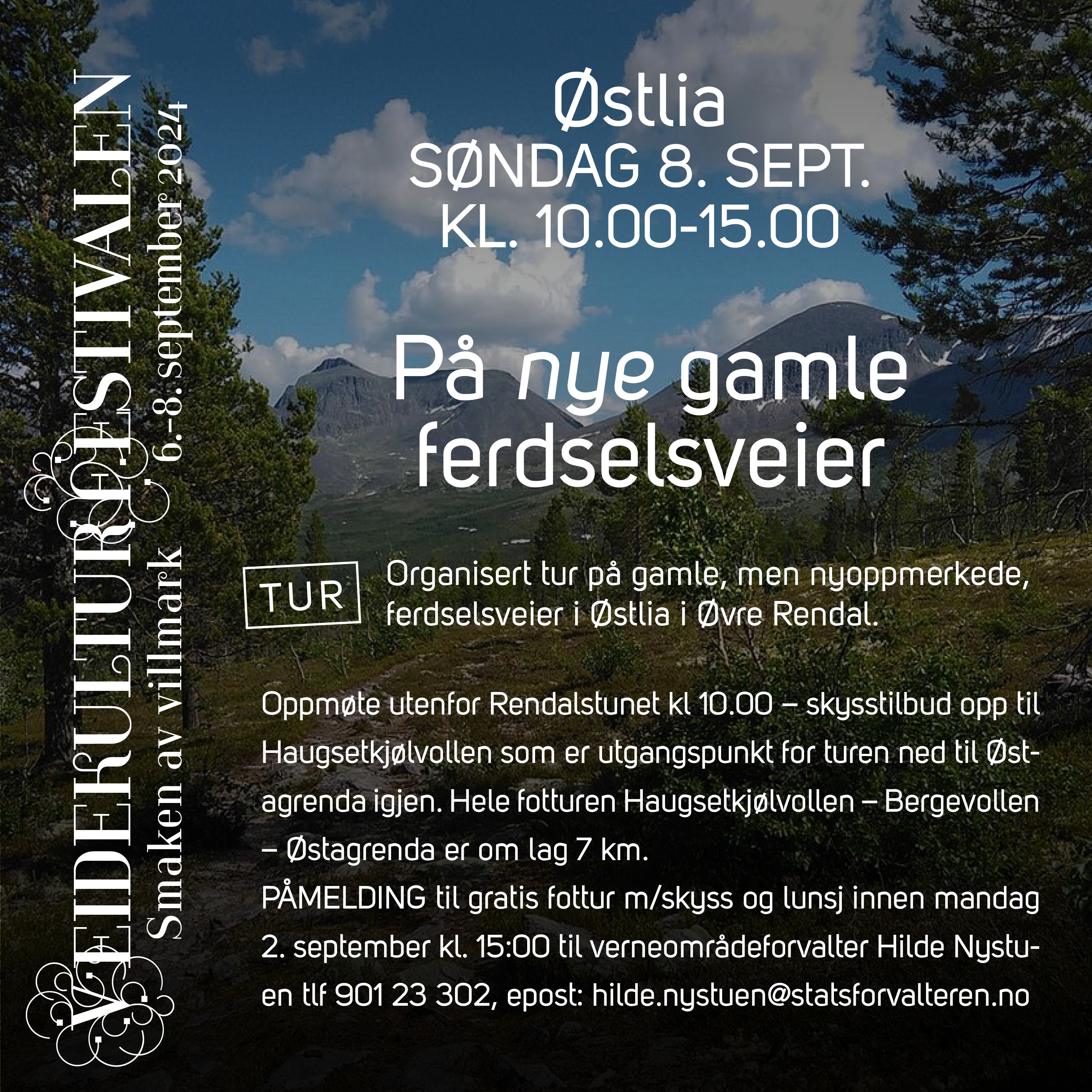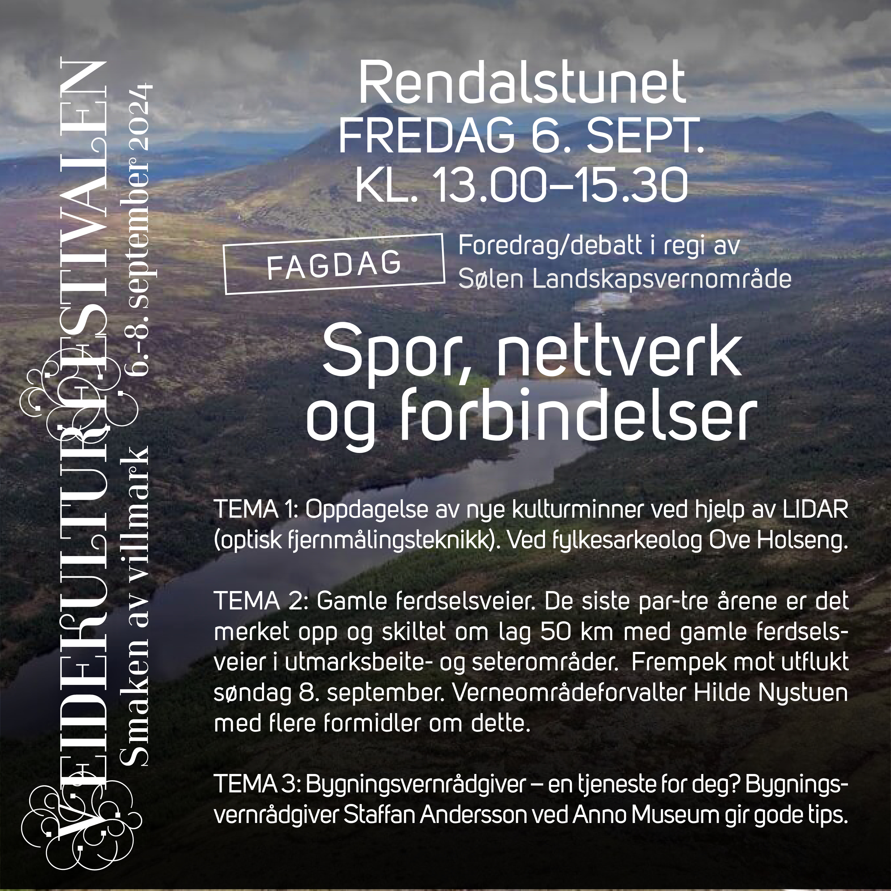 Årets tema er Spor, nettverk og forbindelser. Sølen verneområdestyre er medarrangør på to arrangementer; fagdag fredag 6. september og tur på gamle ferdselsveier søndag 8. september. Velkommen :)