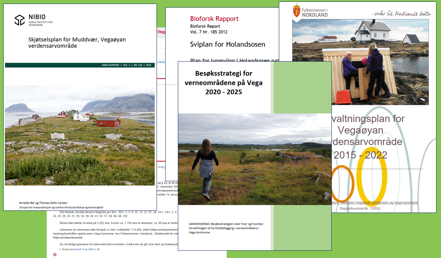 Dokumenter om forvaltningen av verneområdene på Vega publiseres på denne siden. I menyen til venstre er rapporter sortert på tema.
